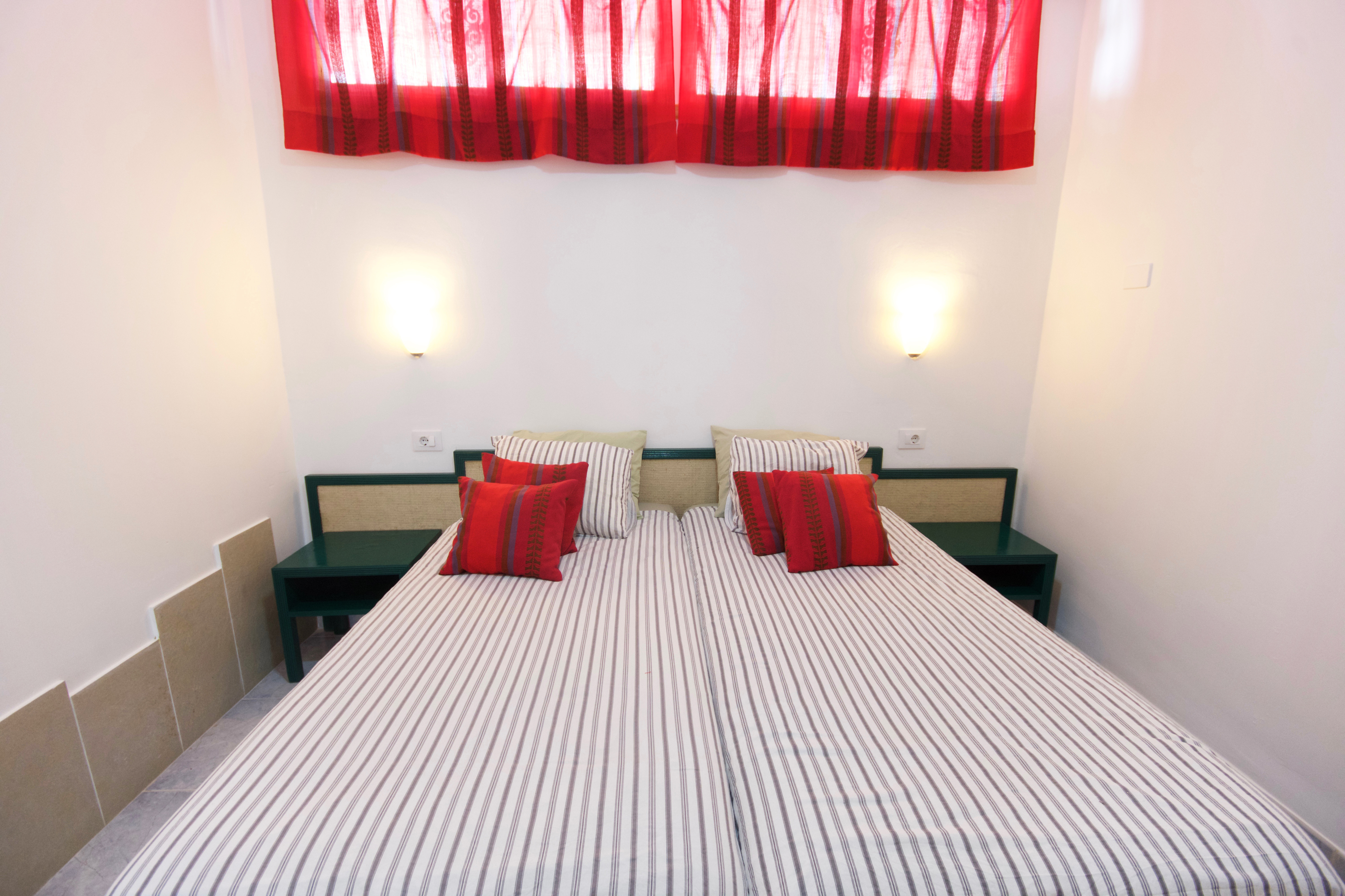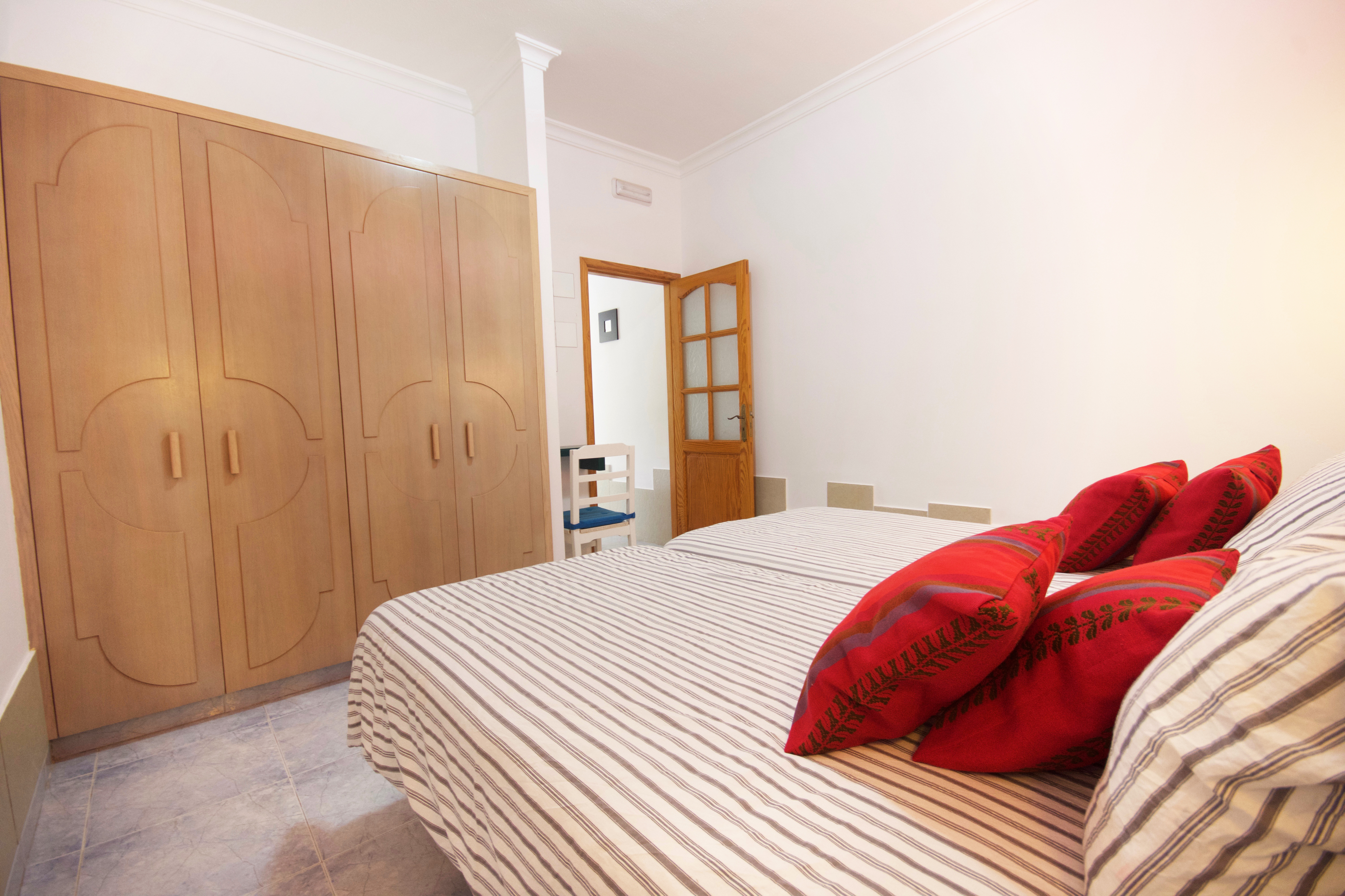 - Dos camas separadas y un gran armario en la habitación.