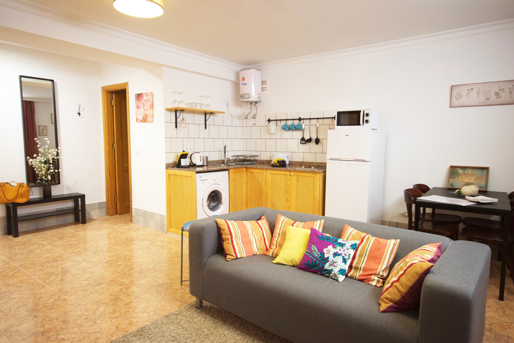 - Cocina bien equipada con Gran nevera, Microondas, Vitrocerámica, Cafetera, Exprimidor de zumo, Tostadora